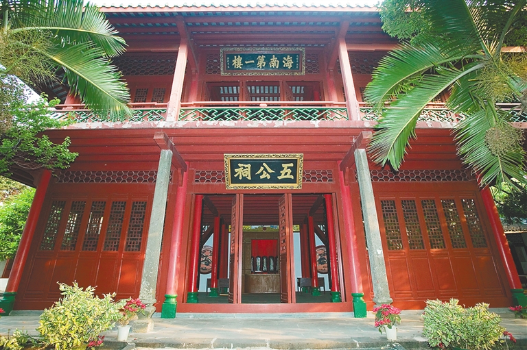 朱采创建的“五公祠”主体建筑和题写的“海南第一楼”牌匾。李幸璜摄