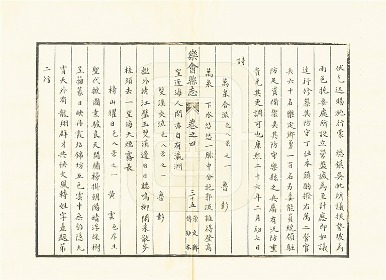 抄本《乐会县志》中鲁彭的部分“乐会八景”诗。国家图书馆藏